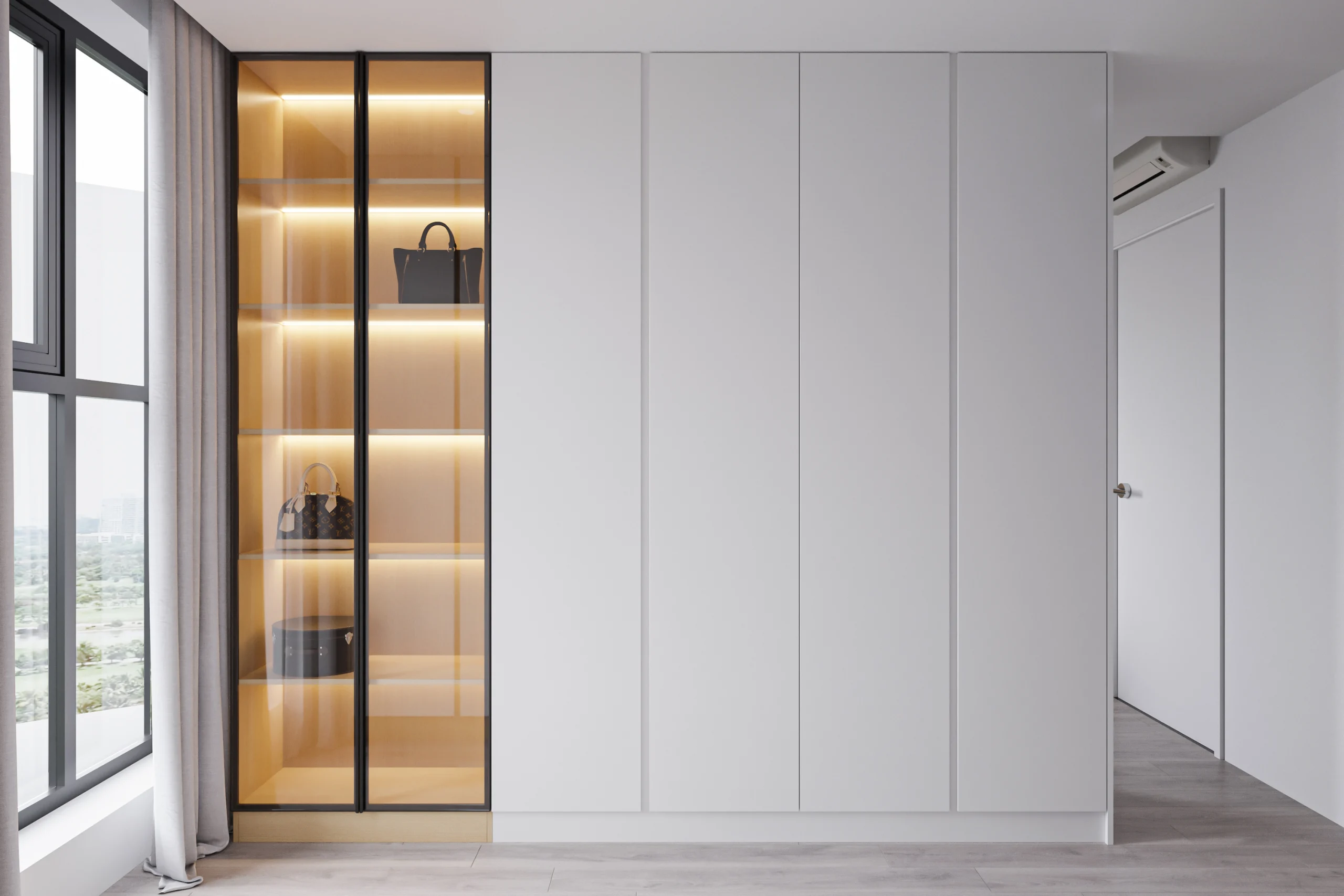 Sliding door wardrobes as the name suggests have doors and compartments which can be opened in a sliding manner. You only have to push the door towards the side and it will smoothly glide open and provide you with the whole wardrobe to choose your dresses and costumes.